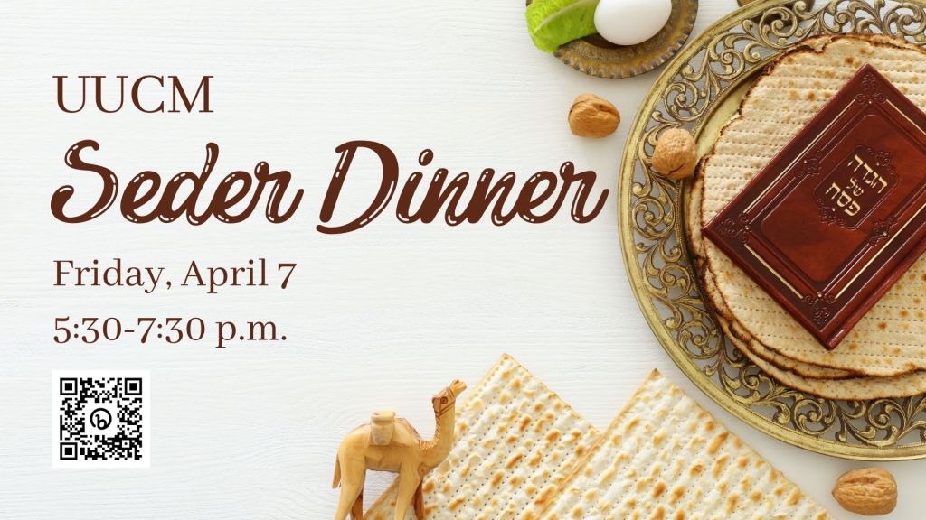 Sign up no later than Sunday, April 2. Sign up online here, scan the QR code above, or sign up in person after services. Let us know how places to set for you and what dish you will bring to share. Contact Alison Cerier if you have any questions or would like to help that evening.