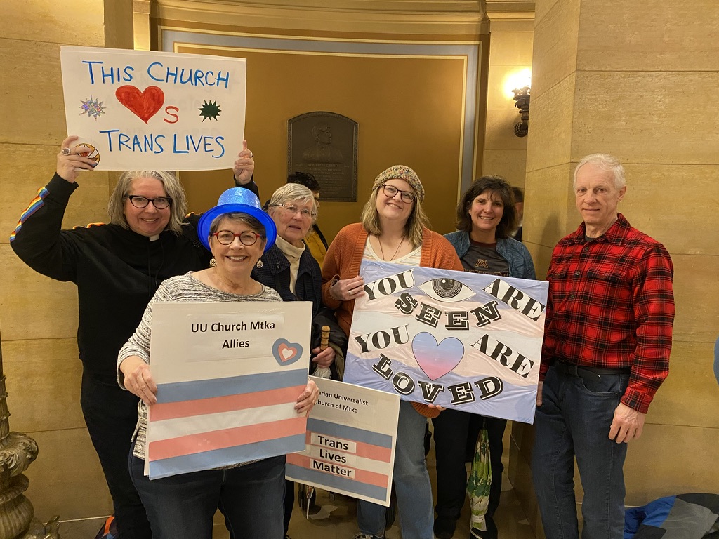 UUCMers showed up at the capitol Friday in support of national Trans Visibility Day. Sponsored by OutFront Minnesota, the event had wonderful performers and speakers, including Lt. Gov. Peggy Flanagan and Rep. Leigh Finke. Read more about the event on MPR.