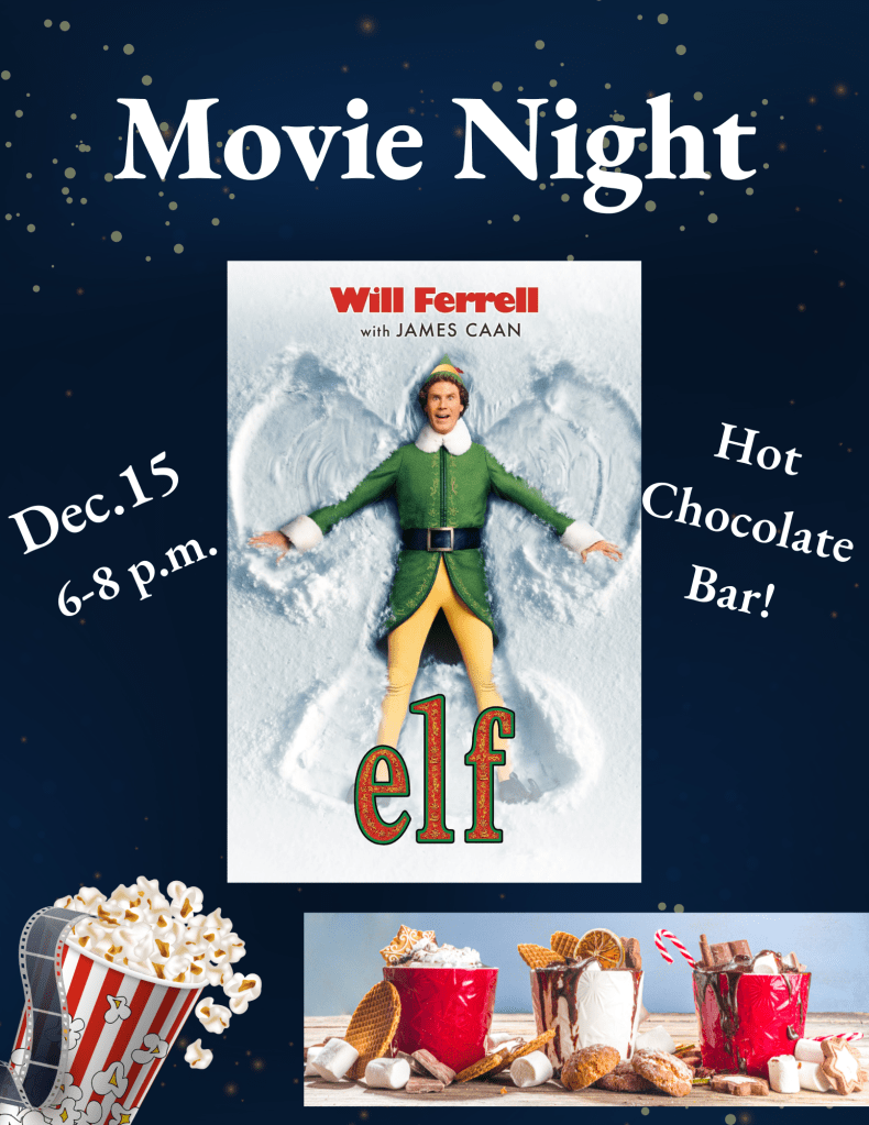 December 14, 2023 by adminuucm Tomorrow Night: Elf Movie Night & Hot Chocolate Bar! Image Announcements, Blog, CYRE Leave a comment Share this: Click to share on Facebook (Opens in new window) Facebook Click to share on X (Opens in new window) X Click to print (Opens in new window) Print Click to email a link to a friend (Opens in new window) Email Like Loading... Related