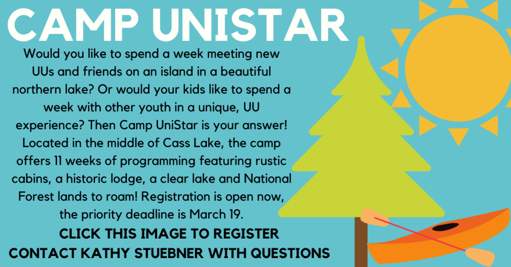 March 15, 2024 by adminuucm Sign Up for Camp Unistar! Image Announcements, Blog, CYRE Leave a comment Share this: Click to share on Facebook (Opens in new window) Facebook Click to share on X (Opens in new window) X Click to print (Opens in new window) Print Click to email a link to a friend (Opens in new window) Email Like Loading... Related