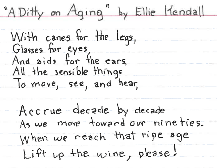Did you miss last week’s Decade’s Service? Ellie Kendall shared “A Ditty on Aging” as one of several reflections on the lessons learned and wisdom gained through aging. You can watch a recording of the entire service here.