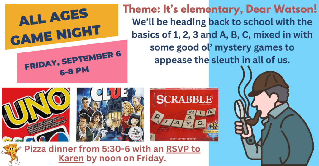 August 29, 2024August 29, 2024 by adminuucm September Game Night Image Announcements, Blog, CYRE Leave a comment Share this: Click to share on Facebook (Opens in new window) Facebook Click to share on X (Opens in new window) X Click to print (Opens in new window) Print Click to email a link to a friend (Opens in new window) Email Like Loading... Related