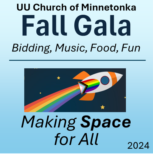 Each year our Fall Gala aims to build connections within the church and raise money for our general fund. By both measures, this year’s Gala – with the theme of “Making Space for All” – was a success, with great participation and more than $25,000 raised for our general fund. It was so fun to see 95 people attend the in-person and online live event on November 2nd, and to have 89 bidders win the 152 item donations by 66 members and friends.