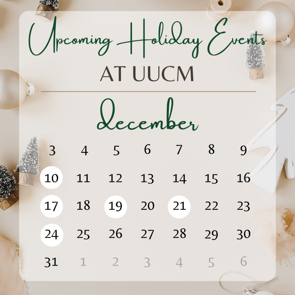 Thank you for your Gifts to UUCM! We are fortunate to be part of a very generous community here at UUCM. Thank you all for your gifts in 2023. Year-end summaries of your giving will be sent in January. Please contact Fred Hulting with any questions.